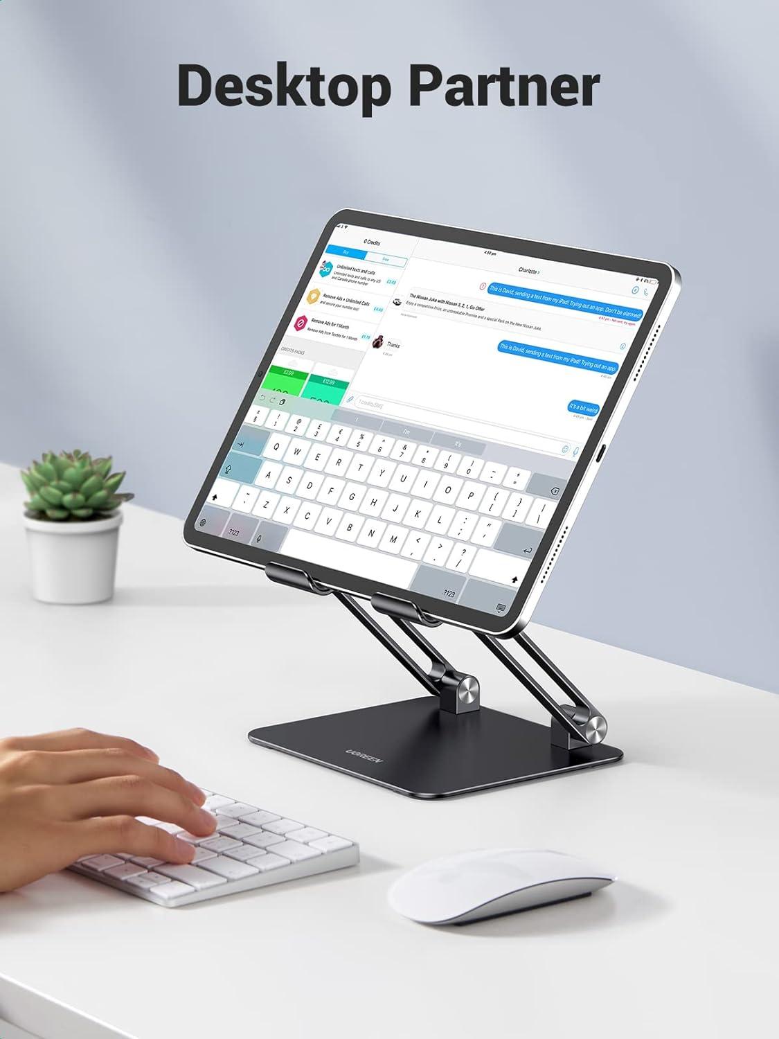 UGREEN Tablet Stand Holder for Desk Dual Rod Support Aluminum Tablet Holder Adjustable Multi-Angle Home Office Accessories Compatible with iPad Pro 13 12 11 10.5 Air Mini 5 4 3 2 Phone E-Reader Silver(Grey)