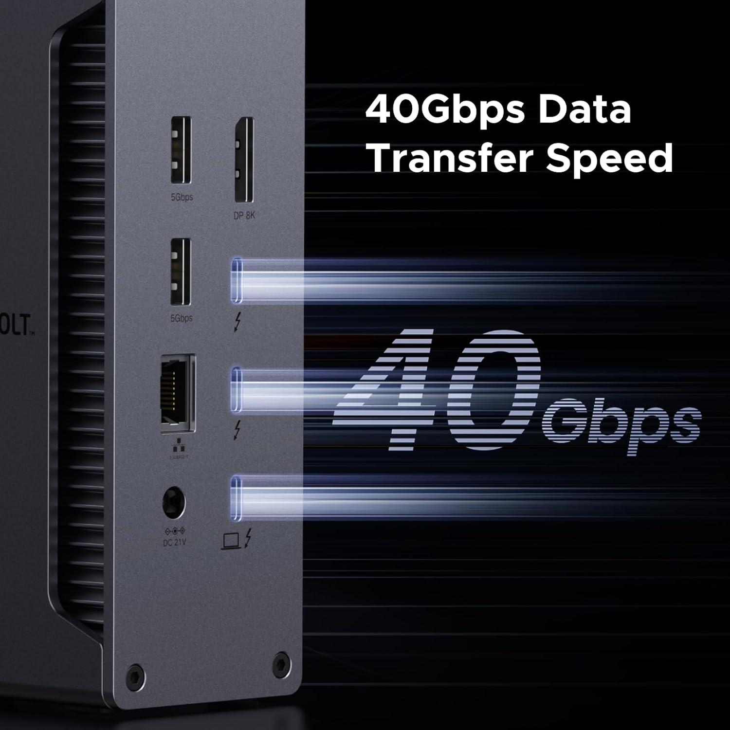 Ultra-Fast Thunderbolt 4 Speeds: Transfer data at 40Gbps, connect multiple devices, and drive high-resolution displays with support for dual 4K@60Hz or a single 8K@30Hz (Windows). Mac users (M1/M2/M3 Pro/Max/Intel) can run dual 4K@60Hz, while base M1/M2/M3 models support single 4K@60Hz. (Requires Thunderbolt 4/3 or USB4 port with DP 1.4 support.)