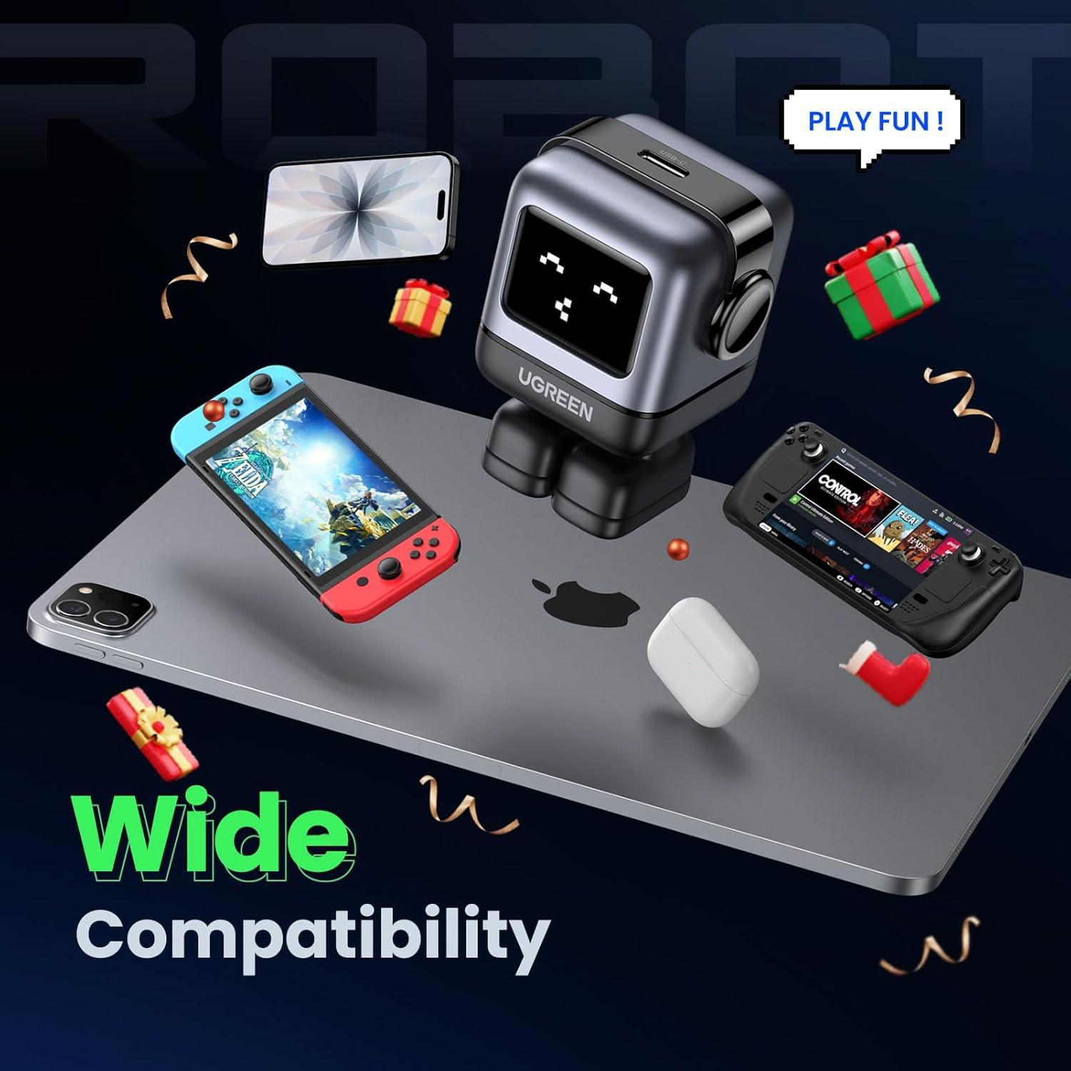 【Fun & Smart Design】Stand out with the fun robot-shaped charger. The intelligent LED screen shows real-time charging status and expressions, while the compact design fits neatly on your desk or nightstand. A stylish and functional accessory for your home or office.