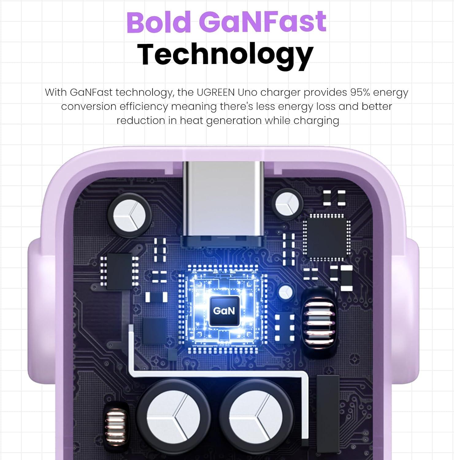 UGREEN Uno 30W USB C Charger Block, Compact Nexode Robot GaN Fast Charger for iPhone 17/16/15/14, Galaxy S25/S24/S23/S22, Pixel 10/9/8/7/6, MacBook Air, iPad Pro (Black)(Purple)