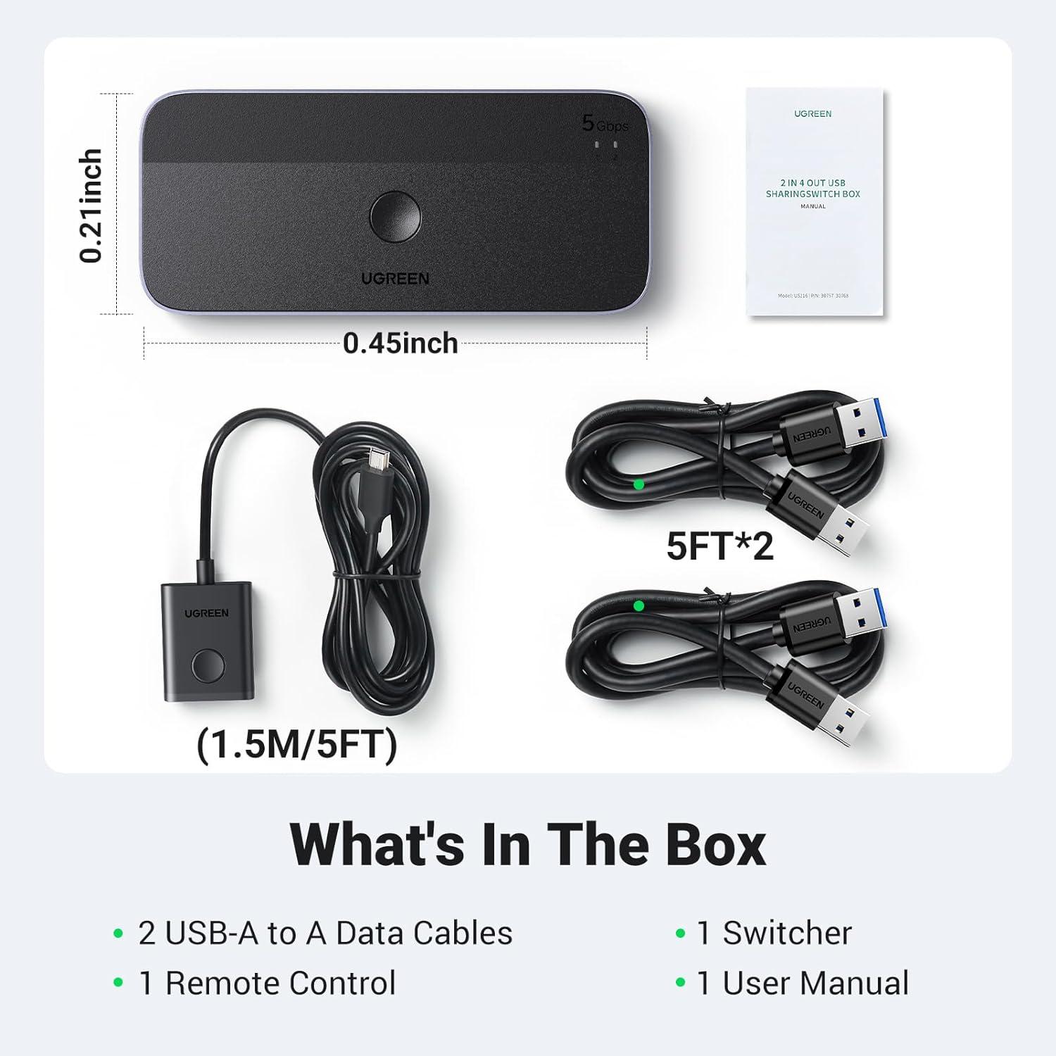 imageUGREEN USB 30 Switch 2 Computers Sharing USB C ampamp A Devices 4 Port USB Switcher Sharing Keyboard and Mouse PrinterScanner USB Switch Hub for Two Computers with 2 USB30 Cables and ControllerBlack