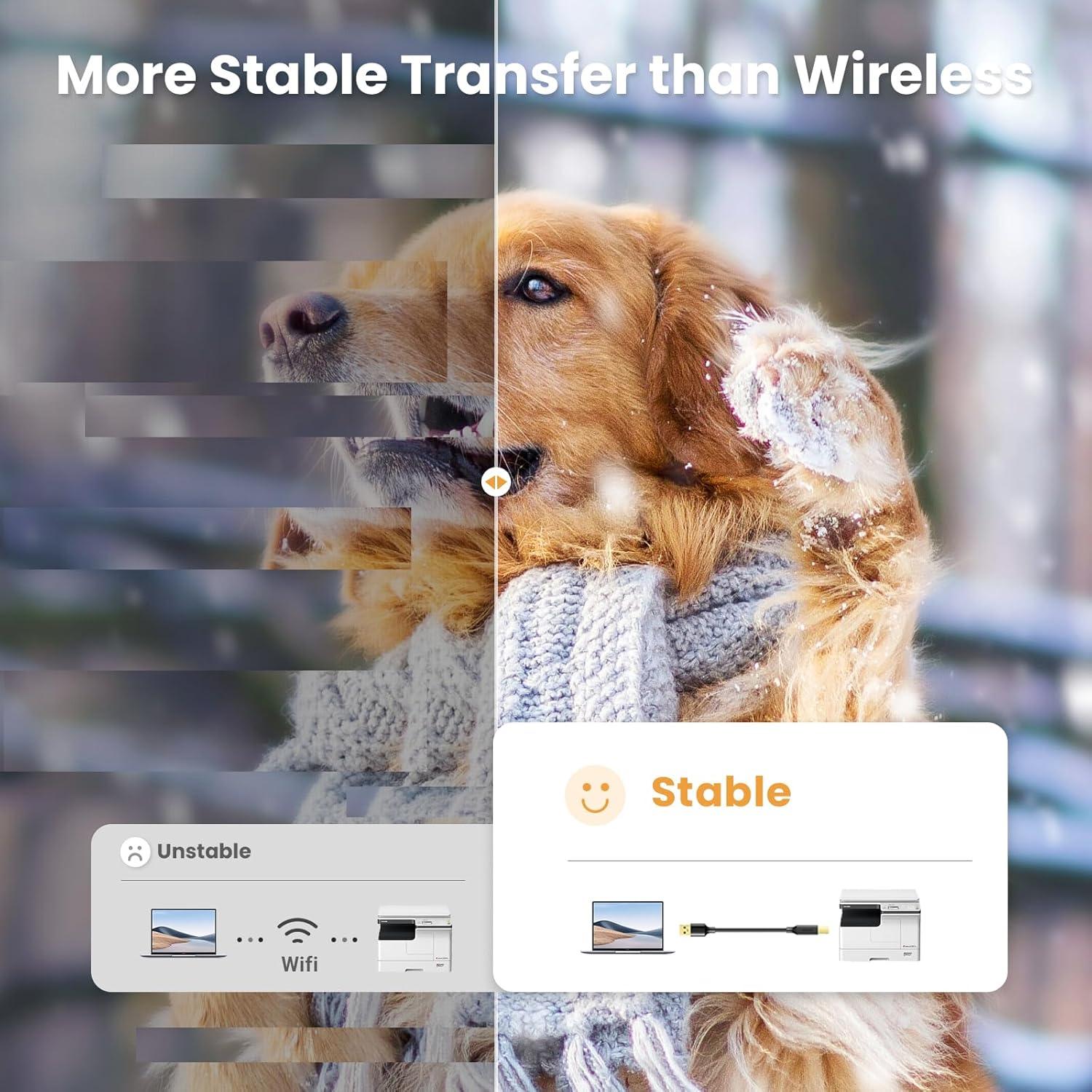 High-Speed Transfer: Up to 480 Mbps transfers data speed for USB 2.0 devices, the USB Type B cable is backward compliant with full-speed USB 1.1 (12 Mbps) and low-speed USB 1.0 (1.5 Mbps). Compared with a WIFI connection, this USB B Cable provides a more stable data transmission and offers a more efficient work way for you.