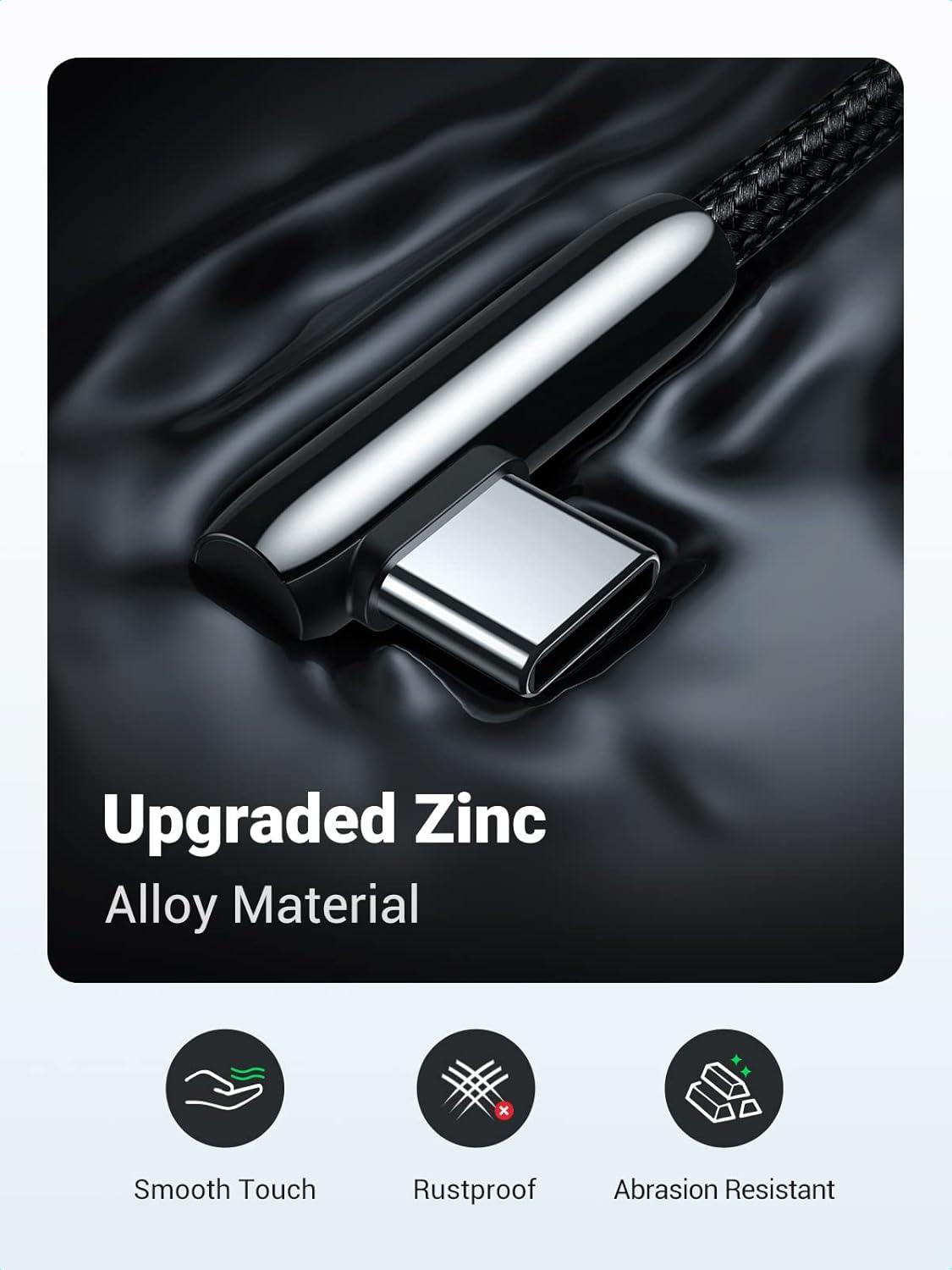 UGREEN USB C Cable Right Angle, USB A to USB C Cable 90 Degree Braided Cord Compatible with iPhone 15/15 Plus/15 Pro/15 Pro Max, iPad Pro/Air, Pixel 8/7, Galaxy S24/S23/S10 S10+ A13, 1.5FT(3FT)