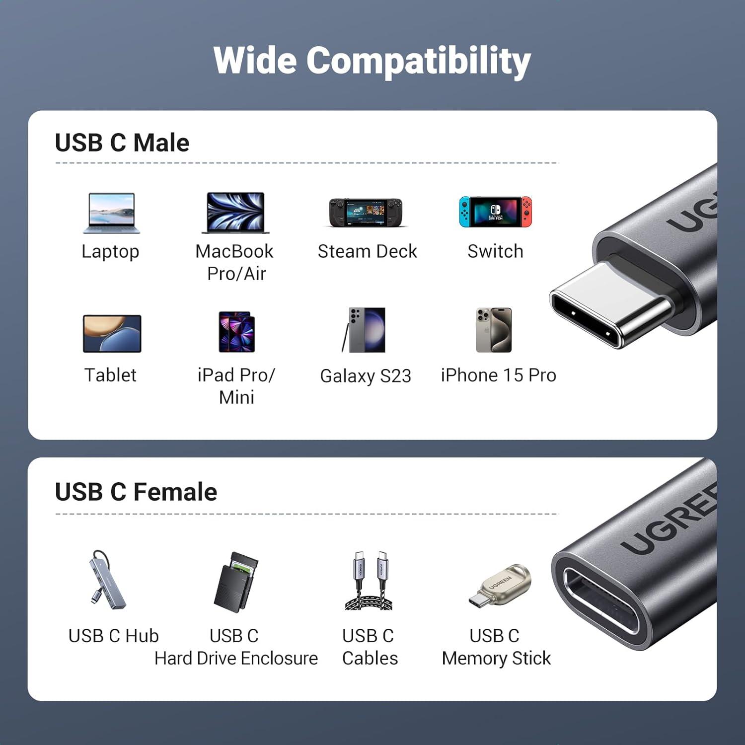 100W/5A Fast Charging: UGREEN USB C extender offers charging speed up to 100W(20V/5A), which can charge your MacBook/iPhone/laptop/iPad at full speed and let you move free. Also it charge type c phones from 0% to 100% in 30 minutes, like iPhone 15, iPhone 15 Pro, Samsung S22 Ultra/S21/S20/Note 20/Note 10, and wireless charger.
