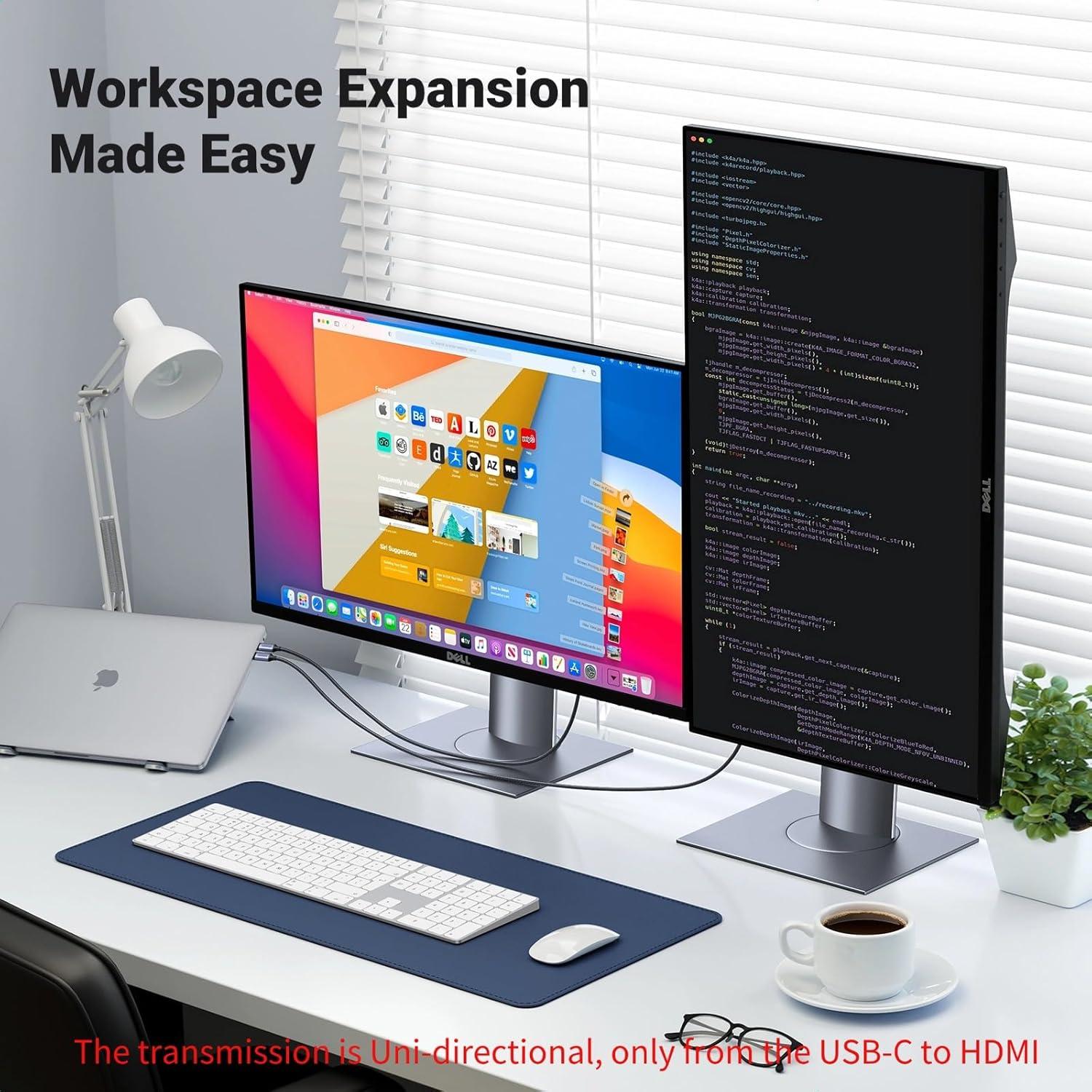 48Gbps High Speed, Enhance Transmission: HDMI 2.1 features a significant increase in transmission speed over HDMI 2.0 and 1.4. The USB-C to HDMI cable transmits data at speeds of up to 48Gbps and 240Hz and is backward compatible with earlier HDMI 2.0, 1.4. With the best signal transmission, it can ensure amazing sound and image quality, and an end to screen flickering. *Note: The transmission is Uni-directional, only from the USB-C to HDMI