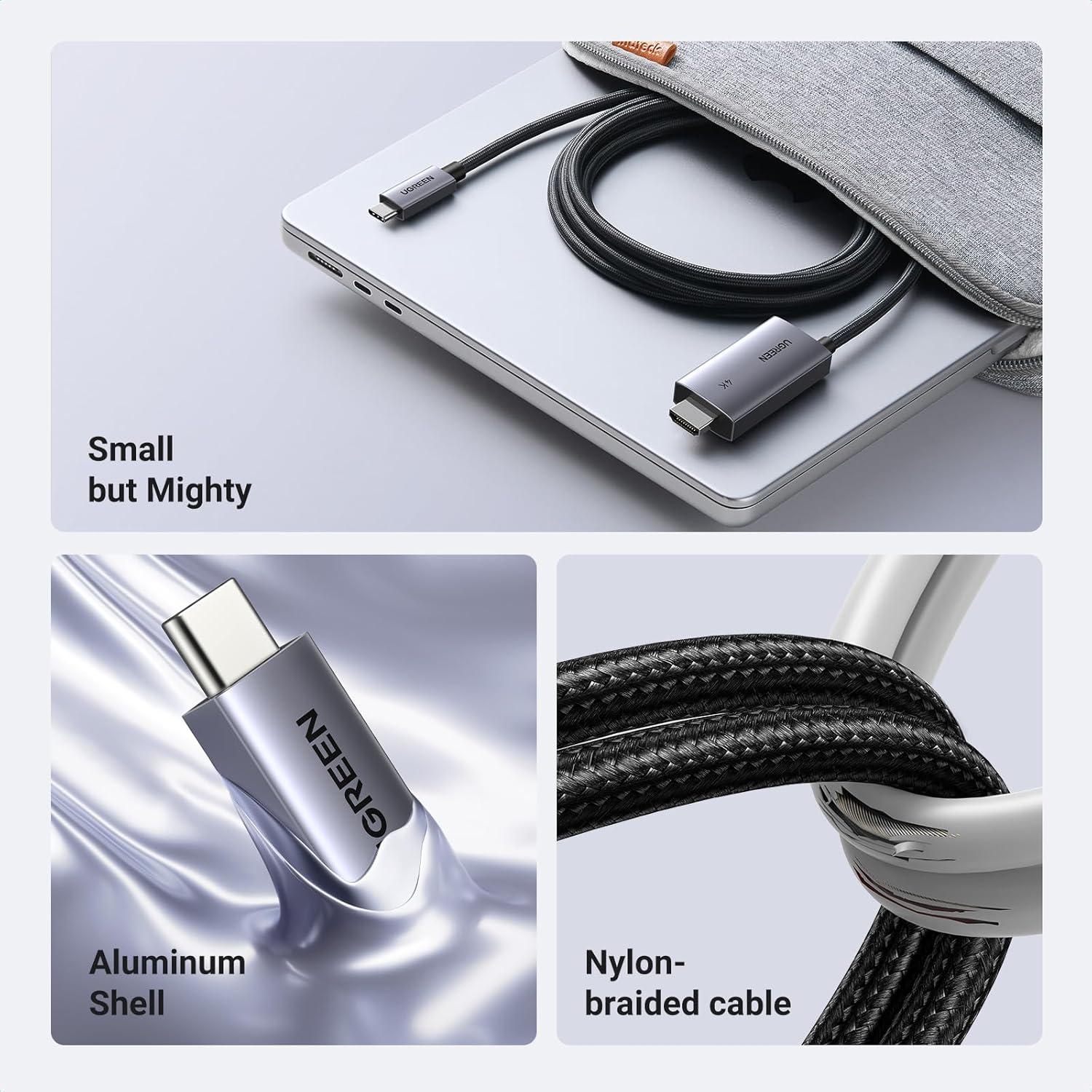 4K@60Hz USB C to HDMI & Charge Adapter: UGREEN 4K USB C to HDMI cable helps you enjoy games and video on the HDMI display while charging USB C source devices. It features male USB C and HDMI port for video input & output and another female USB C for charging. The thunderbolt to HDMI cord easily connects USB C devices to HDMI displays for audio & video signal transfer