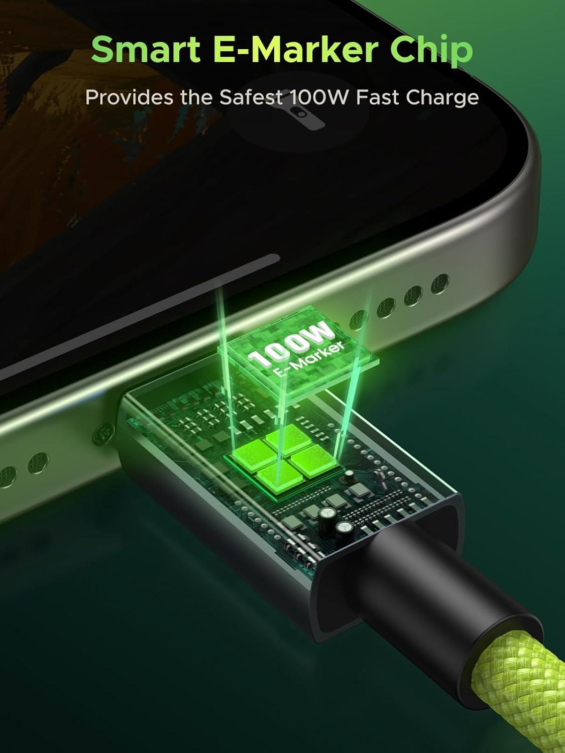 Smart E-Marker Chip & Wide Compatibility – Automatically identifies connected devices to optimize power delivery and data transfer. Works seamlessly with iPhone, iPad, Android, and gaming consoles.