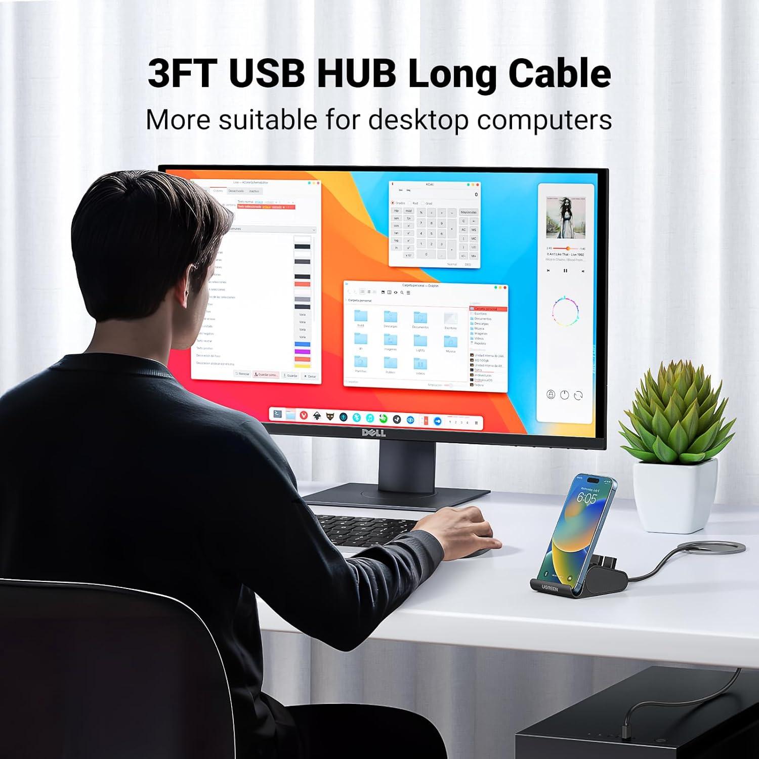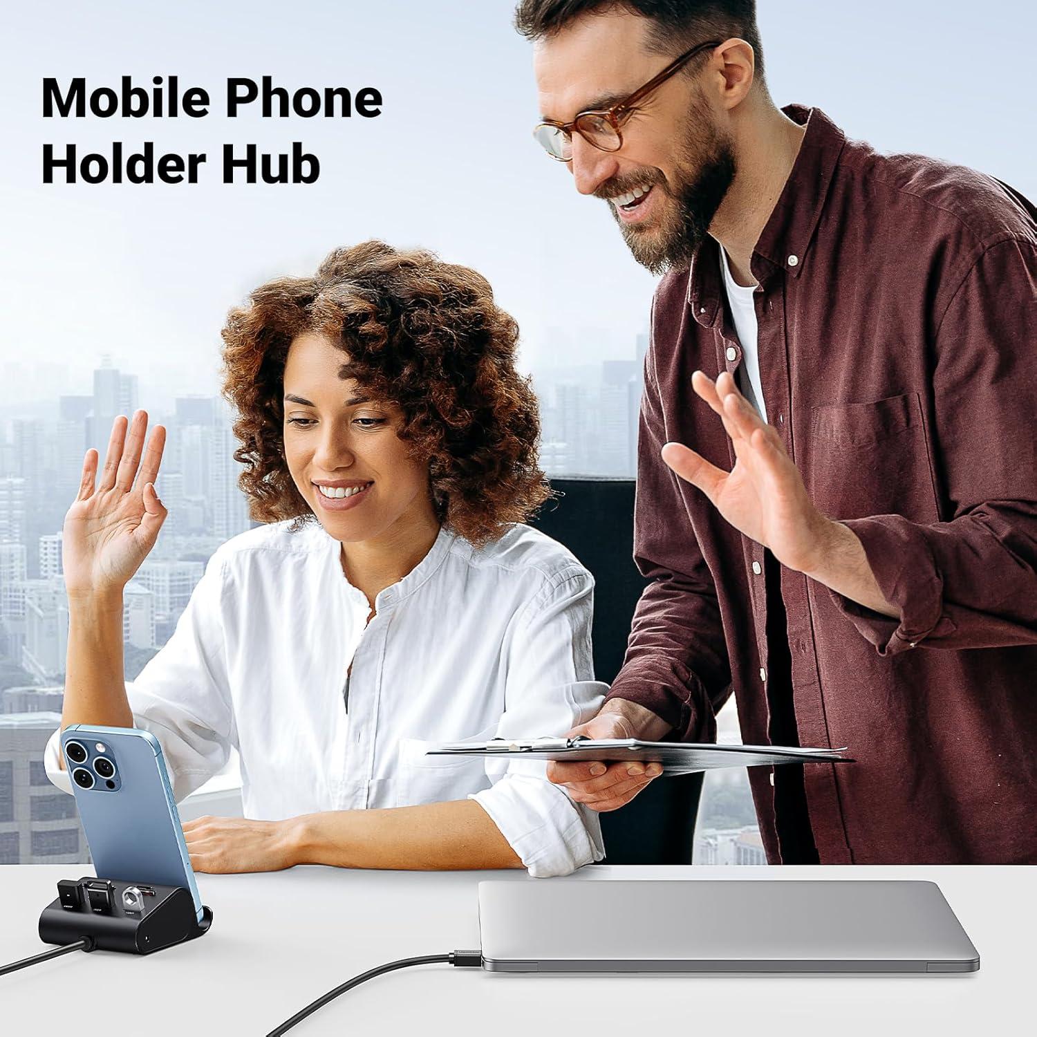 Expand&Protect USB Ports: The usb 3.0 hub helps expanding the usb port of pc from 1 to 3, greatly protect the USB port from frequently plug and unplug. Hands-free Enjoying: With the Stand design, you can put your phone/tablet on it for watching movie or viewing news, totally hands free.