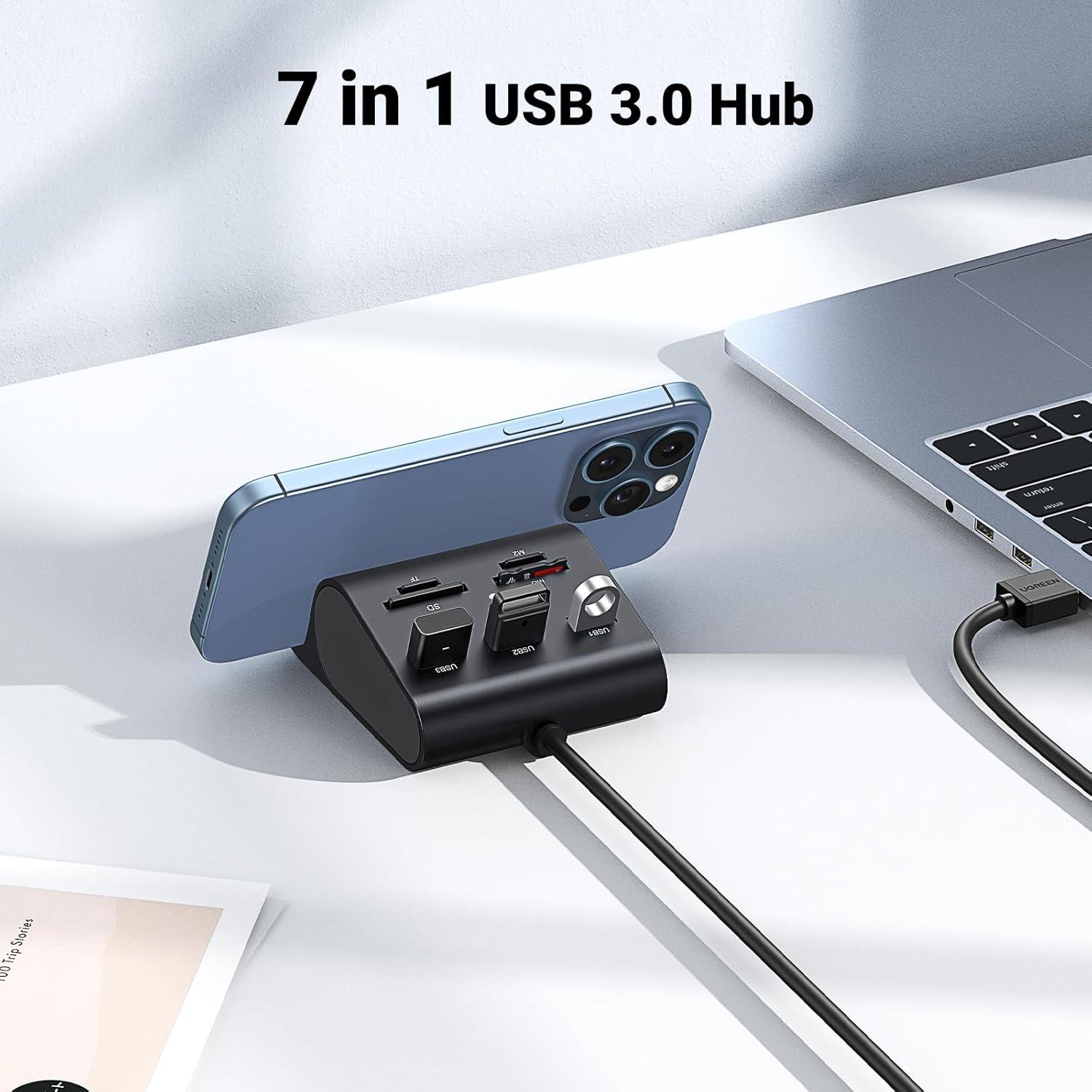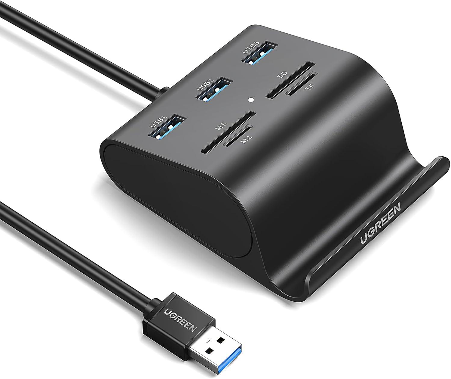 Multi-function Device Makes Best Companion: Ugreen USB Hub Card Reader has been specifically designed for laptops, tablets and ultrabooks. It is 3-in-1(usb 3.0 hub, card reader, phone stand), perfect companion for office, home table use and also traveling.(The standard DC 5V Adapter is not included)