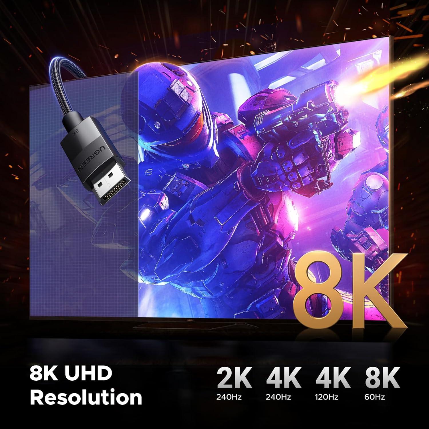 UGREEN VESA Certified 8K DisplayPort Cable 6.6FT, DP 1.4 Display Port Cable Cord Support 8K@60Hz, 4K@240Hz, FreeSync, G-Sync, HDR, 32.4Gbps for HDTVs, Displays, Monitors, Graphics, PC(10FT)