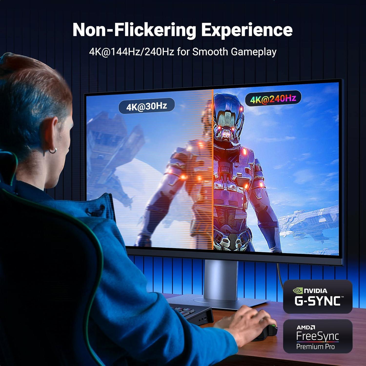 8K Ultra Resolution, Designed for Game Enthusiasts: This 8K Thunderbolt 2 to DisplayPort Cable supports high resolution of 8K@60Hz and 4K@240Hz. It also provides 32.4Gbps, DSC1.2a, HDCP2.3, Dynamic HDR, and eARC. Highly recommended for game setups as it works well with game monitors and graphics cards, delivering high-quality video and audio signals with no lag or interference. It supports FreeSync and G-Sync, which are essential for gaming
